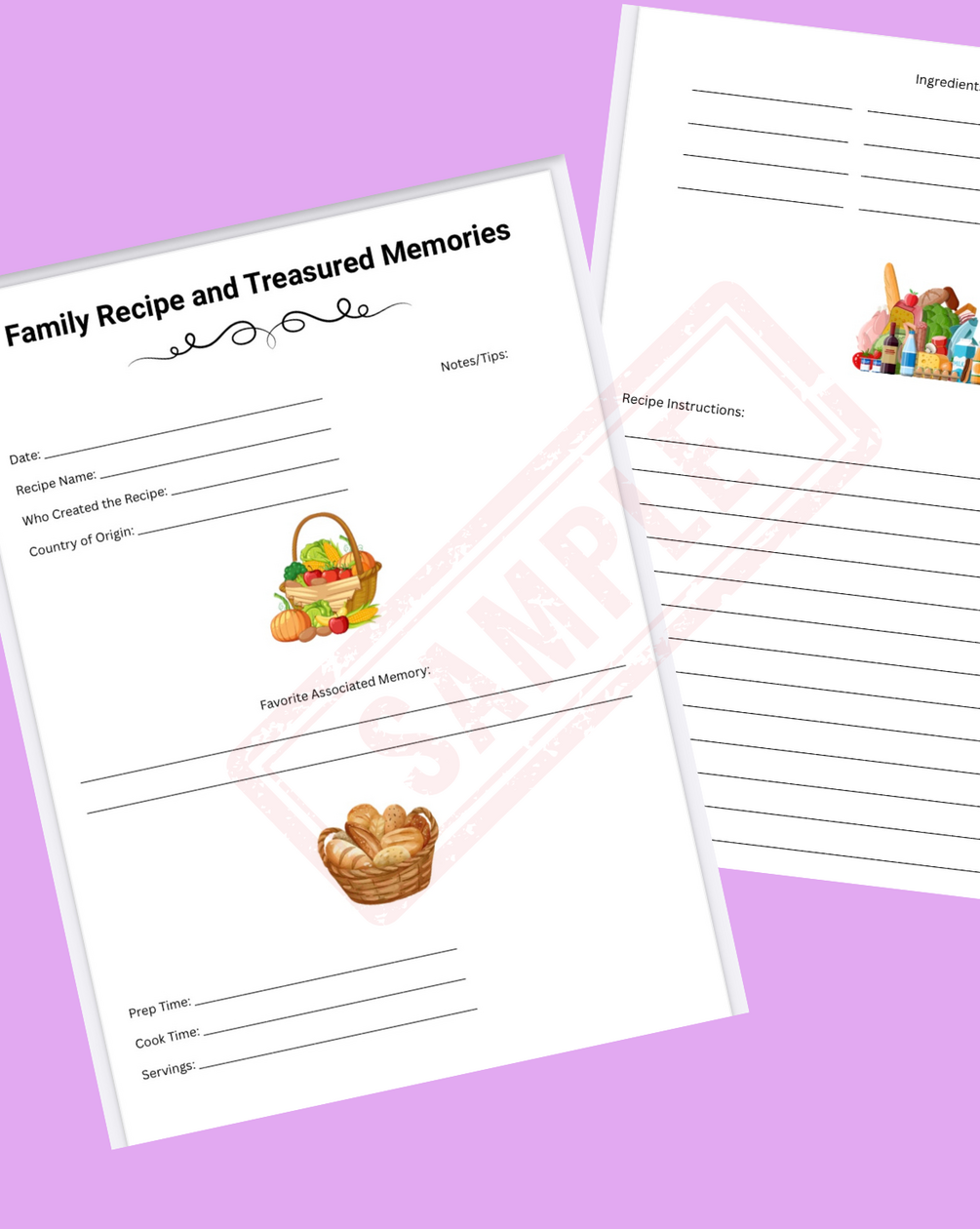 Family Recipe and Treasured Memories Digital Download (1 Product; 2 Sheets)